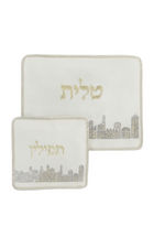 Maison Adar dévoile une pochette en tissu, sublimée par de délicats détails argentés et une inscription en hébreu raffinée.